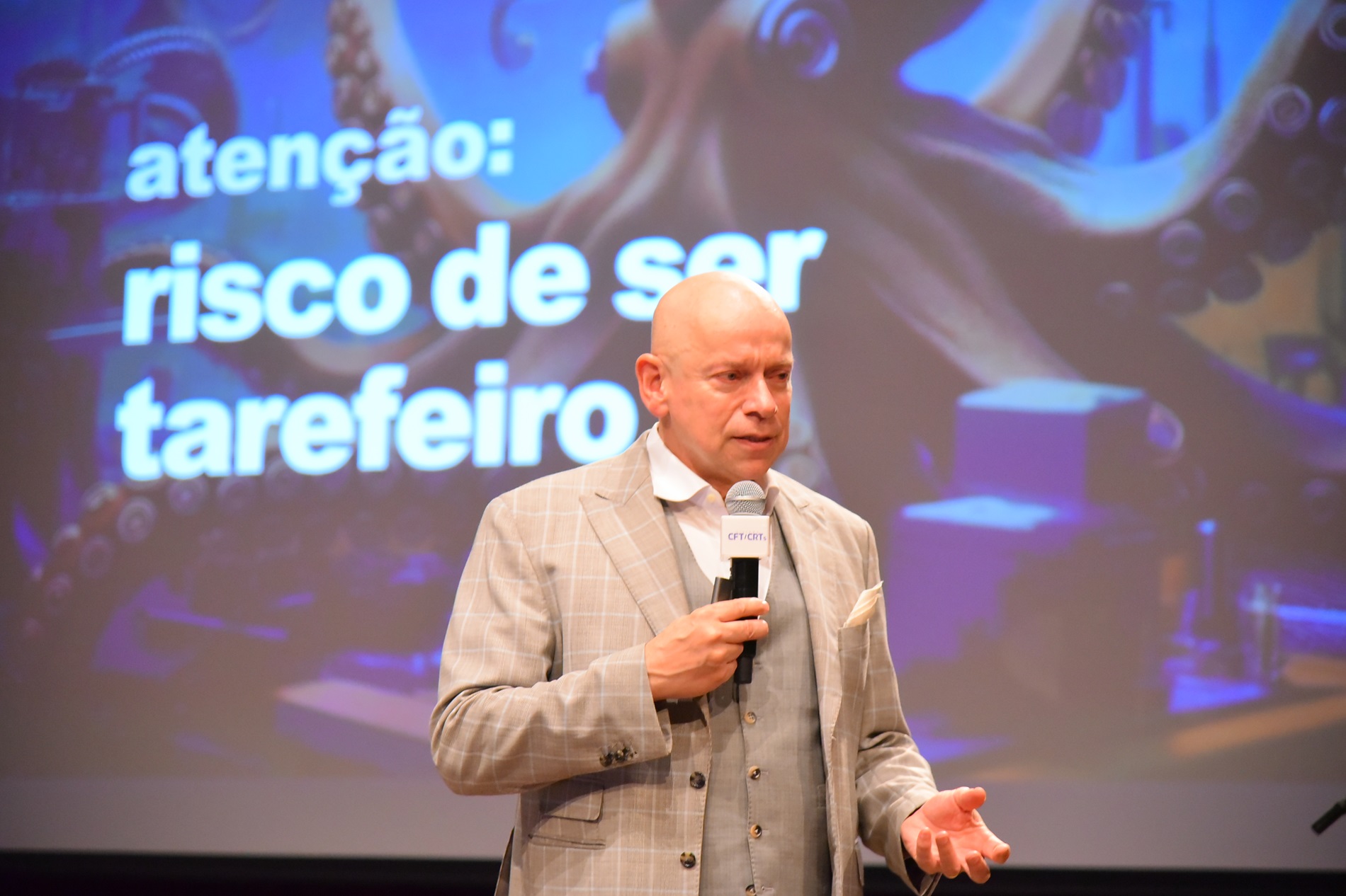 Aos técnicos industriais, Karnal destinou o início da conversa para abordar a necessidade de ressignificação pessoal e profissional diante das mudanças sociais e tecnológicas.