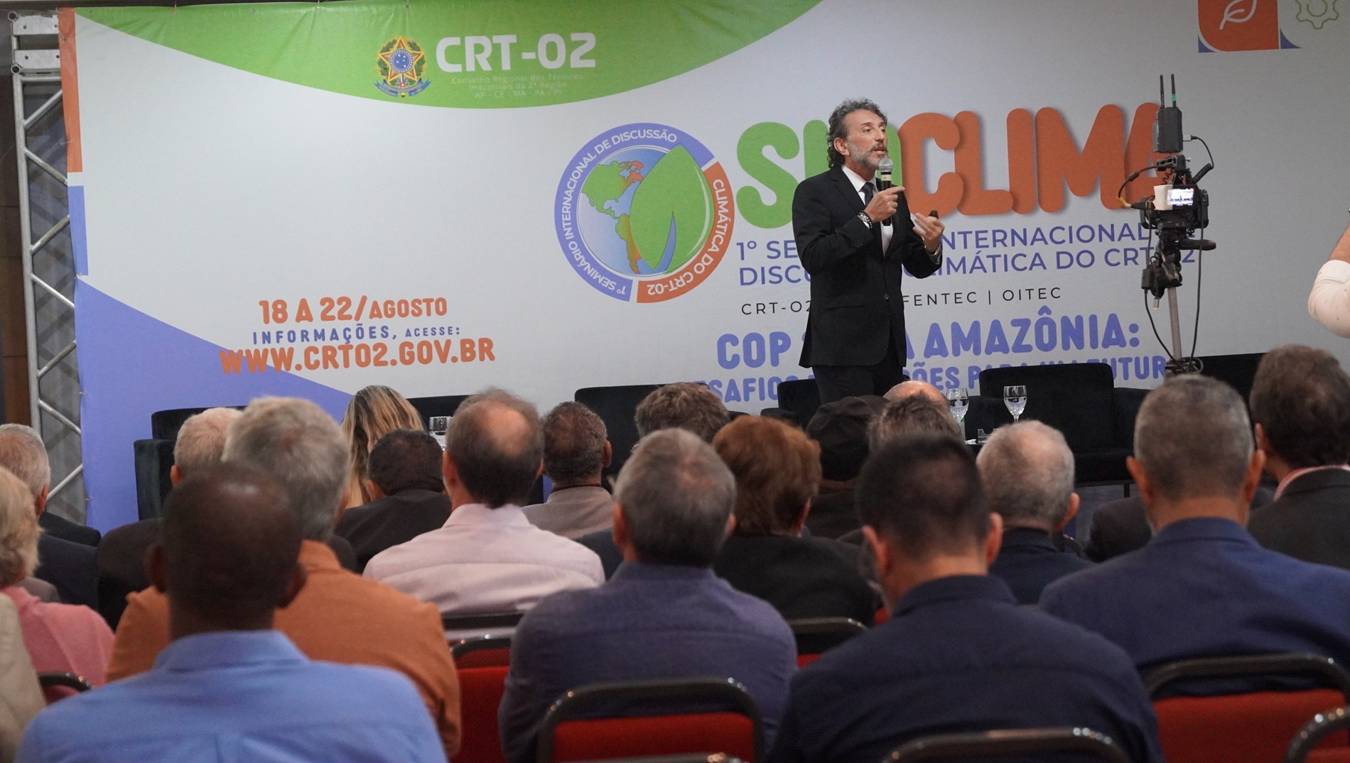 Os palestrantes do dia foram da Renata Andrade, presidente da Rede de Governança Climática de Sustentabilidade (RGCS), senador Zequinha Marinho, membro da subcomissão COP 30 e do Grupo Parlamentar da Organização do Tratado de Cooperação da Amazônia; Elemar Schneider, vice presidente do CRT-RS e Kleber Veloso, técnico industrial registrado no Sistema CFT/CRTs.