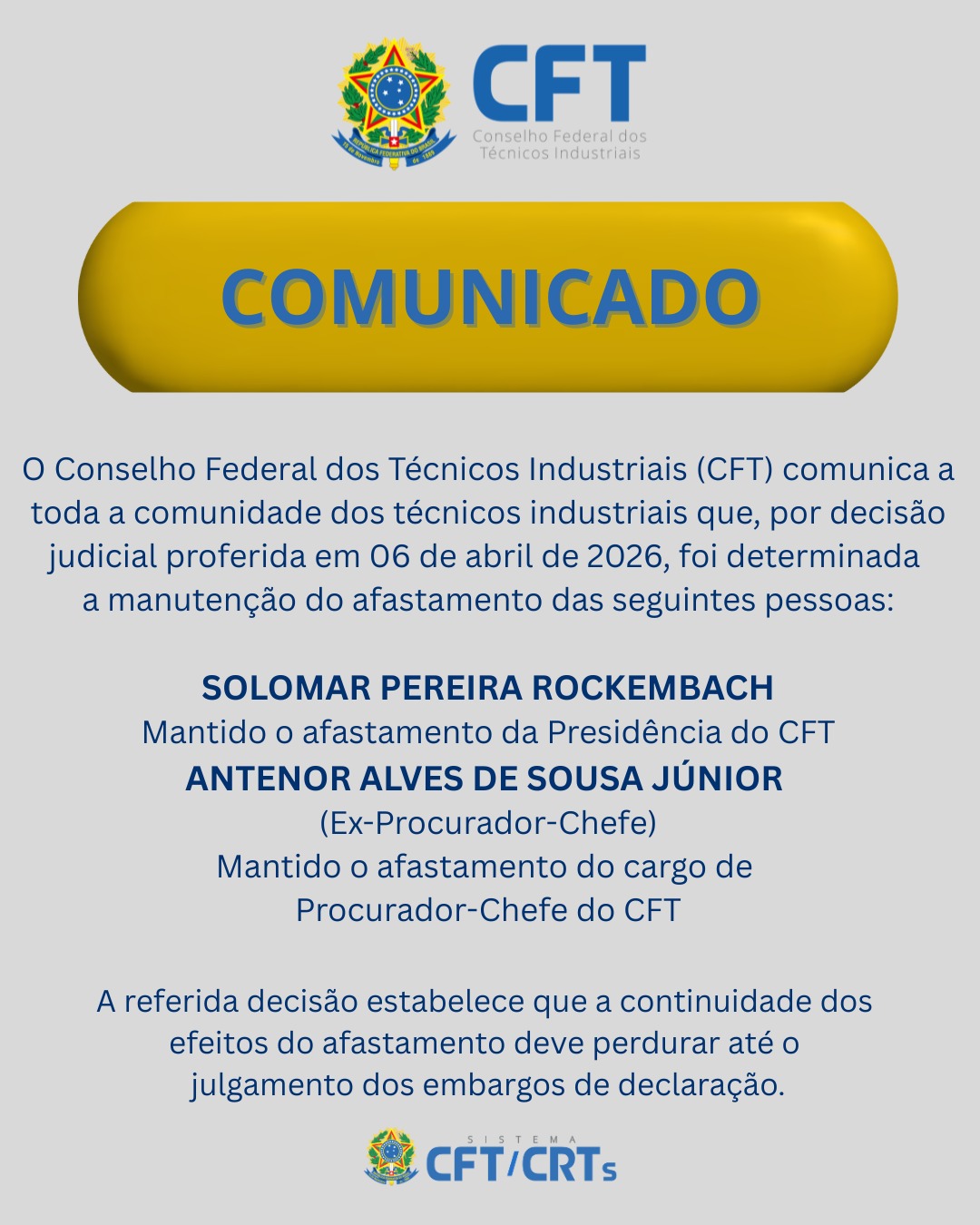 A Cartilha da Eletromobilidade é fruto de um trabalho minucioso realizado pelo Grupo de Trabalho instituído pela Portaria CFT n.º 180/2025. O grupo foi criado com a finalidade específica de estudar e propor normas que definam as atribuições, os campos de atuação e as prerrogativas dos técnicos registrados no Sistema CFT/CRTs.