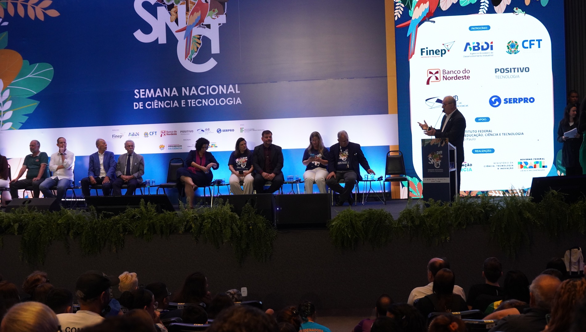 Inácio Arruda, secretário de Ciência e Tecnologia para o Desenvolvimento Social (SEDES), representou ministra da Ciência, Tecnologia e Inovação, Luciana Santos, e liderou a cerimônia de premiação. Em pronunciamento, agradeceu aos patrocinadores, o engajamento dos estudantes e professores que apresentaram estudos e projetos na 21ª Semana Nacional da Ciência e Tecnologia, e o apoio dos familiares dos jovens cientistas de todo o Brasil.