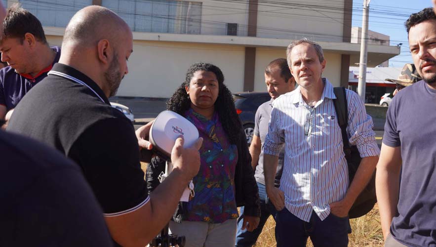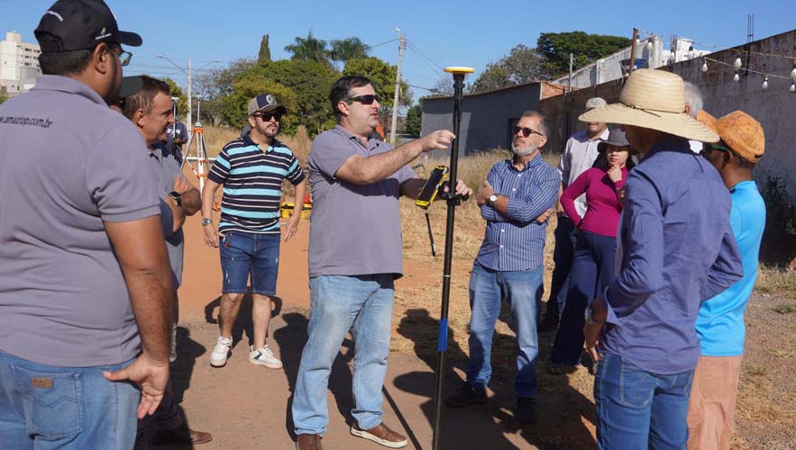 Dia de Campo conectou conhecimento e tecnologia no sábado (6), último dia do Seminário Nacional de Agrimensura. Realizado em área urbana localizada na divisa entre o município de Aparecida de Goiânia e a capital do estado, o evento reuniu cinco empresas que apresentaram equipamentos e soluções para o exercício profissional dos técnicos que atuam na regularização fundiária em todo o Brasil.