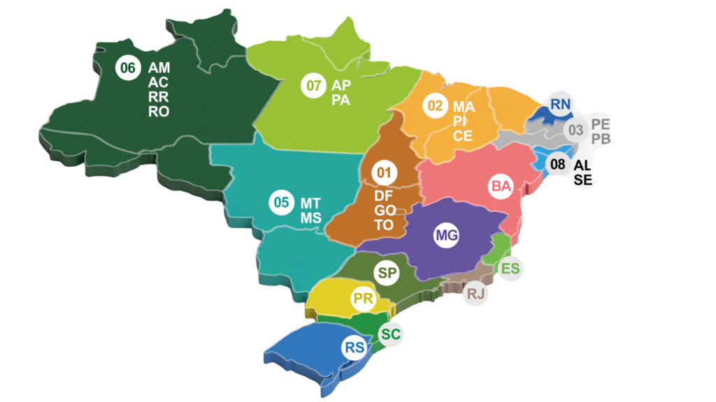 Os regionais desmembrados ou que abrangem mais de uma unidade da Federação terão a seguinte distribuição de vagas.