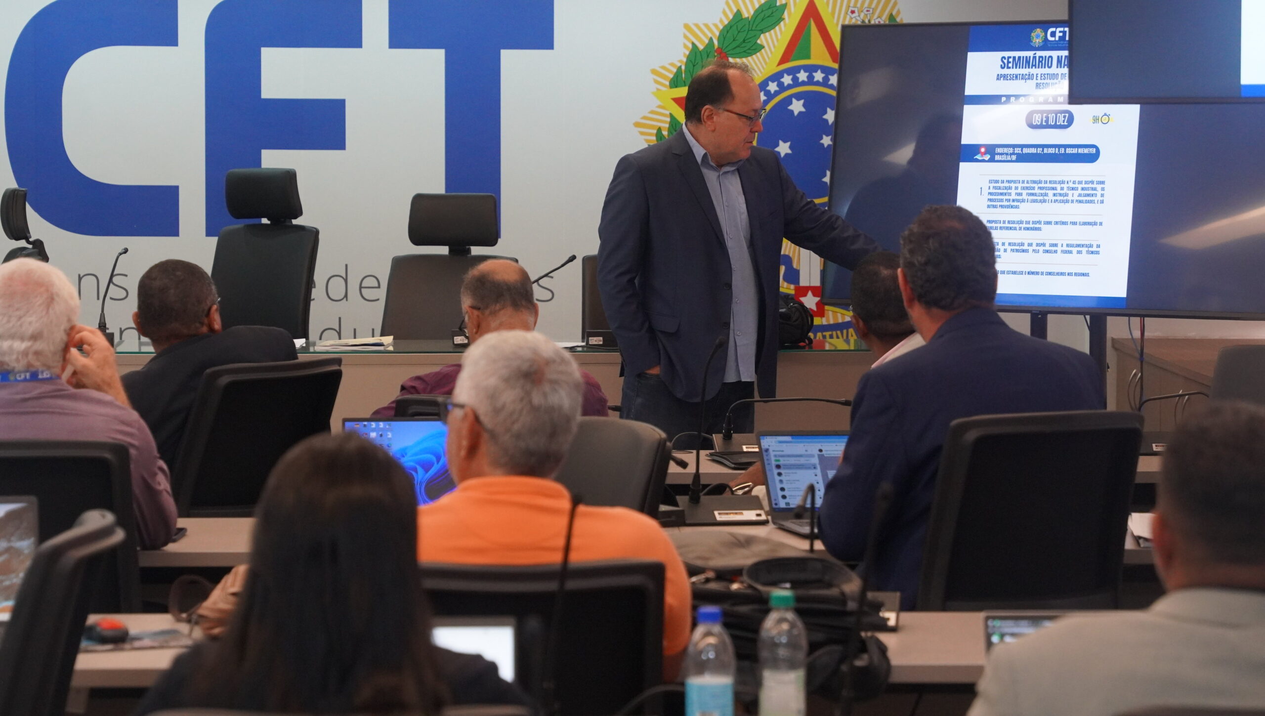 O Seminário Nacional de Apresentação e Estudo de Propostas de Resolução, encerrou nesta quarta-feira (10/12), com discussões e debates sobre processo eleitoral do Sistema CFT/CRTs. No último dia da programação organizada pelo Conselho Federal dos Técnicos industriais (CF), também foram discutidos aspectos dos textos das minutas de normativas que serão apreciadas na 46ª Plenária Ordinária da autarquia federal.