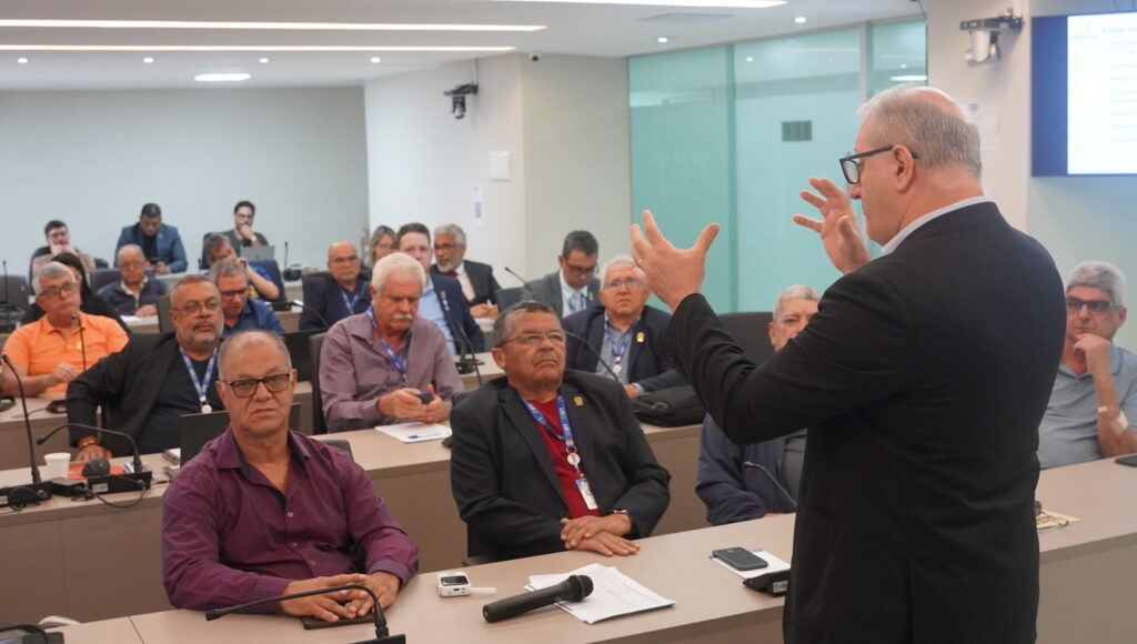 A aplicação do Regulamento Eleitoral, em vigor desde a instituição da Resolução n.º 277/2025, pautou o início dos trabalhos. Gilmar Pastorio, assessor especial da Diretoria Executiva, discorreu sobre as ações que estão sendo desenvolvidas pela Comissão Eleitoral Nacional (CEN), com foco especial na organização do pleito de 2026. O mediador também abordou o número de conselheiros (federais e regionais) para a gestão 2026/2030, detalhando a distribuição por regional.