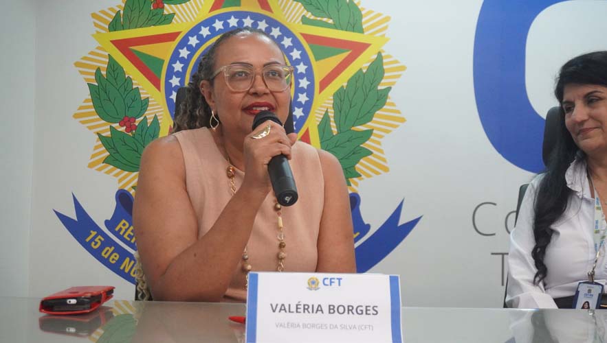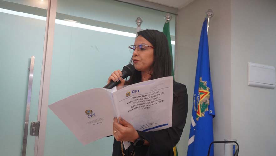 A conselheira federal suplente do CRT-01 e representante titular do CFT no Fórum, Valéria Borges da Silva, realizou, em nome de todas as integrantes, a leitura do Termo de Compromisso das Conselheiras Federais do Fórum Nacional Feminino.