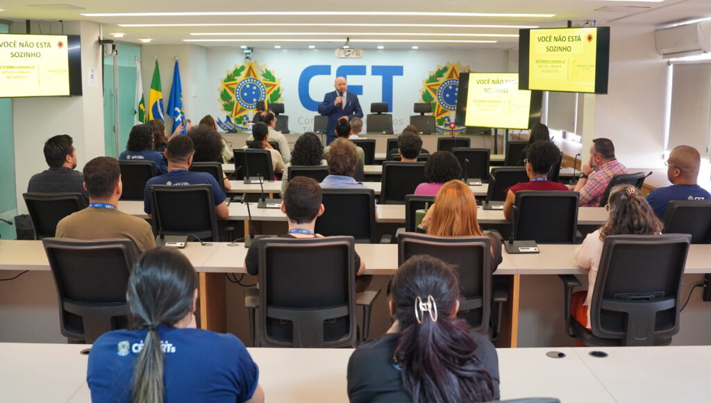 A atividade do Engaja CFT abordou o tema “Setembro Amarelo“. Fabiano Lopes, psicólogo, escritor e palestrante motivacional, orientou os presentes de forma didática sobre a prevenção ao suicídio. Segundo ele, a depressão, a ansiedade e o transtorno do pânico são os principais sintomas e exigem atenção.