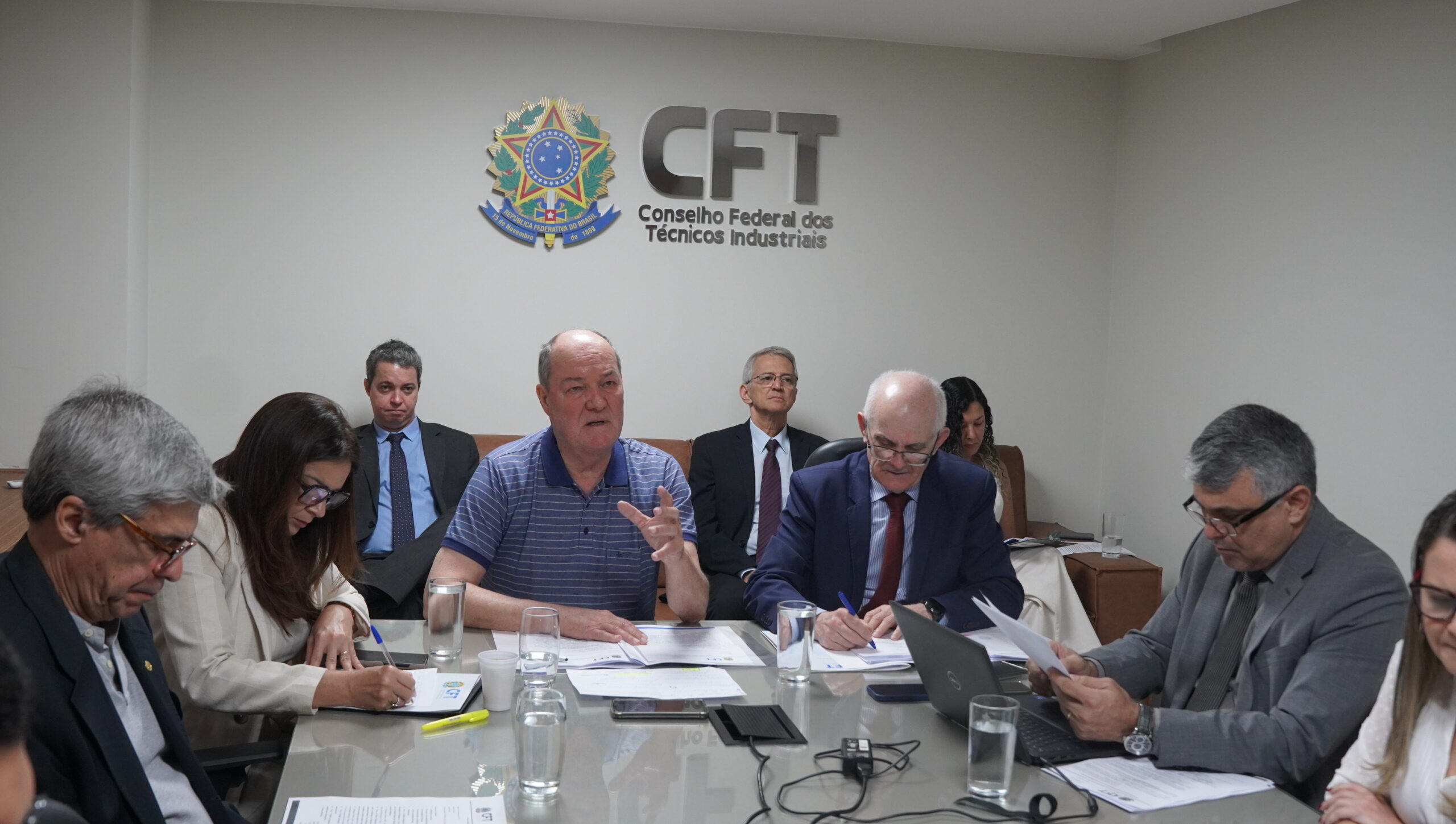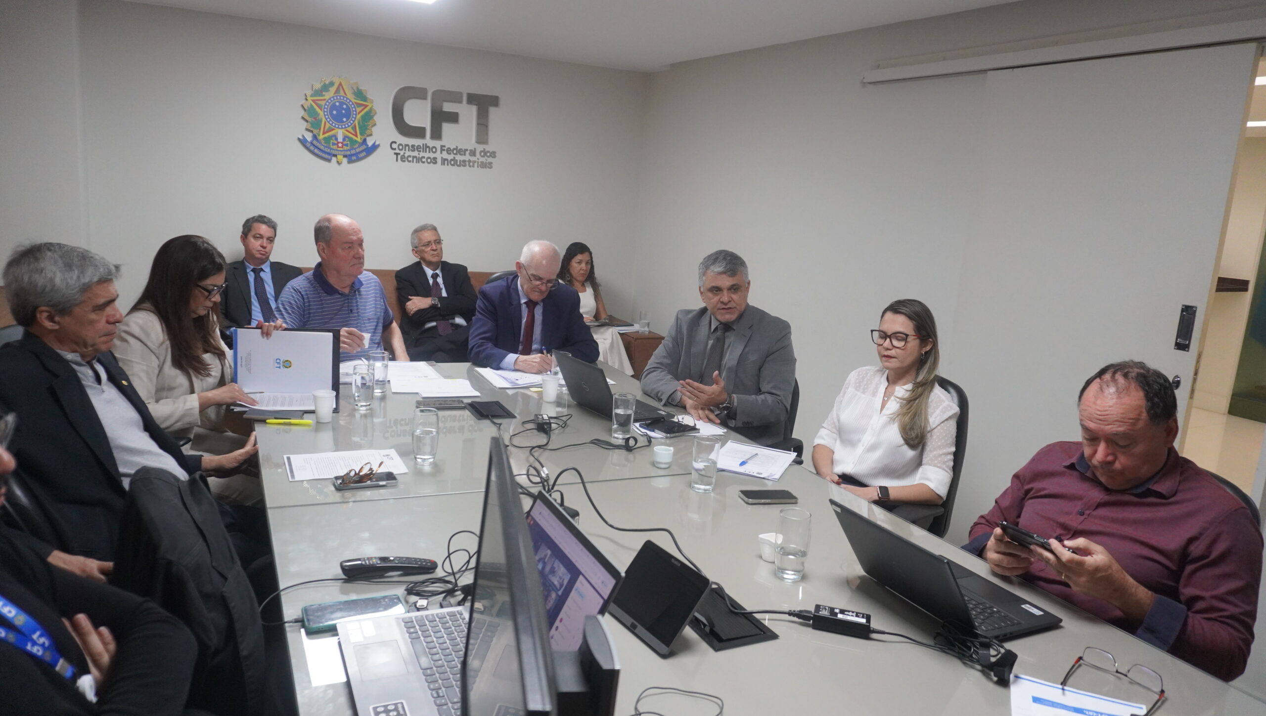 O Plenário do Conselho Federal dos Técnicos Industriais (CFT) esteve reunido na manhã desta quarta-feira (18/09). Os trabalhos da 28ª Sessão Plenária Extraordinária, coordenados pelo presidente interino Ricardo Nerbas, contaram com a participação dos diretores Valdivino Alves de Carvalho (Administrativo), José Carlos Coutinho (Financeiro) e Bernardino José Gomes (Fiscalização e Normas), além dos 27 conselheiros federais que representam o Distrito Federal e os 26 estados brasileiros.