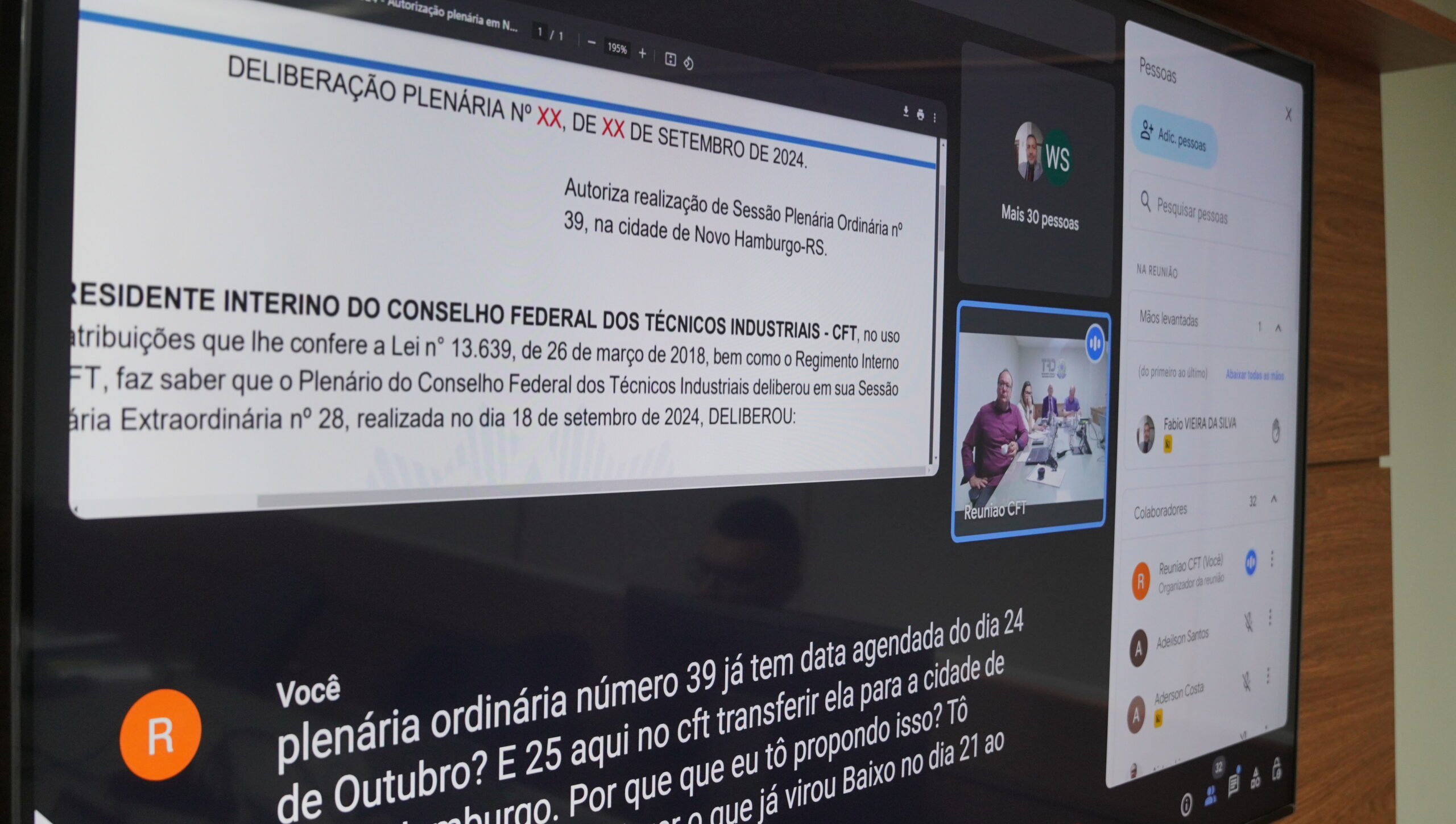 O colegiado máximo do CFT também aprovou a deliberação plenária que autoriza a realização da 39ª Sessão Plenária na cidade de Novo Hamburgo, no Rio Grande do Sul. A reunião ordinária marcada para o dia 24 de outubro de 2024 será realizada durante a Mostra Internacional de Ciência e Tecnologia (Mostratec), que ocorre entre os dias 21 e 25 de outubro, nos pavilhões da Feira Nacional do calçado (Fenac).