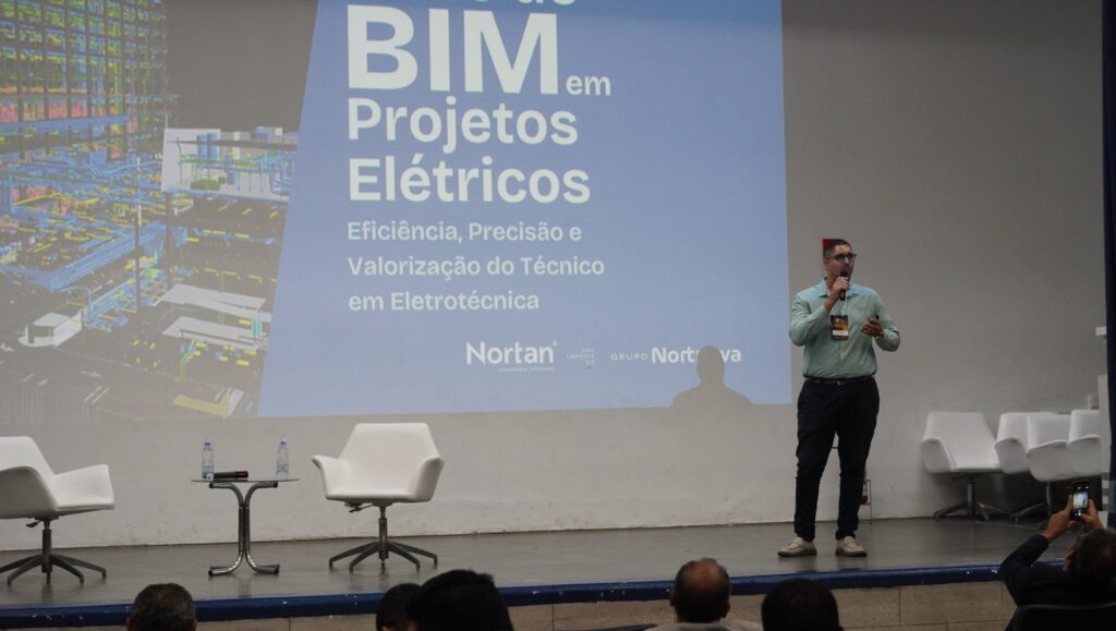 Tales Augusto Costa Gomes focou sua palestra em demonstrar como a metodologia Building Information Modeling (BIM) está revolucionando a elaboração de projetos elétricos. O palestrante destacou que o BIM proporciona ganhos significativos em eficiência e precisão e vai muito além do simples desenho 3D.