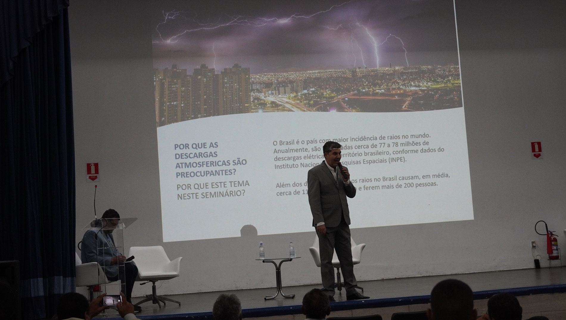 O palestrante explorou o fenômeno físico do raio – desde sua formação nas nuvens até impacto no solo – e destacou que a falha na proteção pode resultar em incêndios, danos estruturais e perda de equipamentos sensíveis, exigindo que os técnicos em eletrotécnica dominem a correta aplicação das normas técnicas, como a NBR 5419.