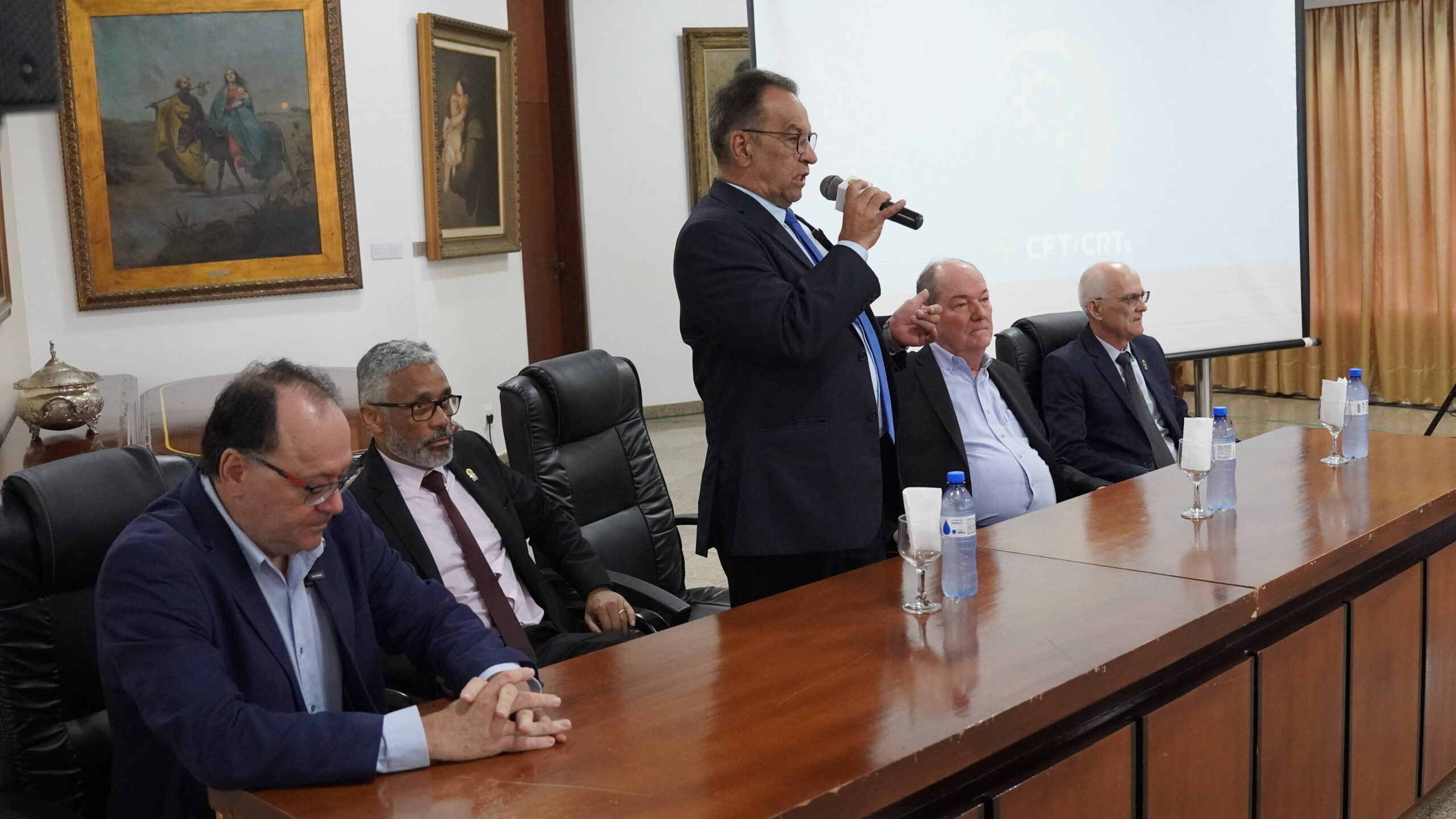 A abertura, mediada pelo diretor de Fiscalização e Normas do CFT, Bernardino José Gomes, também teve pronunciamentos do presidente, Solomar Rockembach, do vice-presidente Ricardo Nerbas, dos diretores José Carlos Coutinho (Financeiro) e Valdivino Alves Gomes (Administrativo), do coordenador da Comissão de Registro e Fiscalização do CFT, Érico João dos Santos Júnior, e do coordenador adjunto, Aloísio Carnielli.