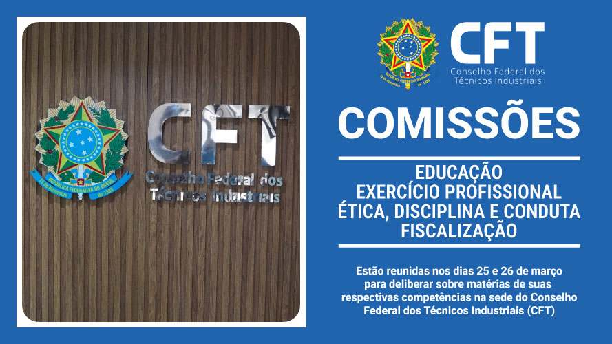 Colegiados de Educação (CE), Ética, Disciplina e Conduta (CEDC), Exercício Profissional (CEP) e Registro e Fiscalização (CRF), compostos por conselheiros federais, apreciam matérias de suas respectivas competências nesta terça (25/3) e quarta-feira (26/3) no Conselho Federal dos Técnicos Industriais (CFT),…